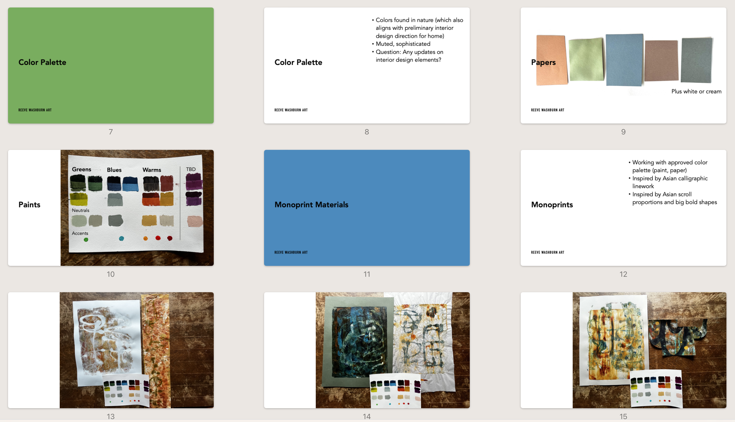 Once we had established all project parameters, we moved to fewer status check-ins and more independent creation back on my coast. There’s nothing that an artist likes better to hear than “you decide – I trust you!” But more important here was for me to trust myself, especially when it came to production methods: I had to be assured that my custom-created monoprints would adhere properly to the panels. I decided to do a smaller proof of concept piece with all the same materials as well as a panel created by the same maker, Bara Woodshaping of Eugene, OR . Once satisfied, I gave myself a personal green light to proceed with the triptych.